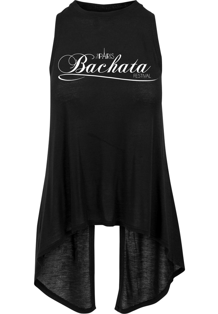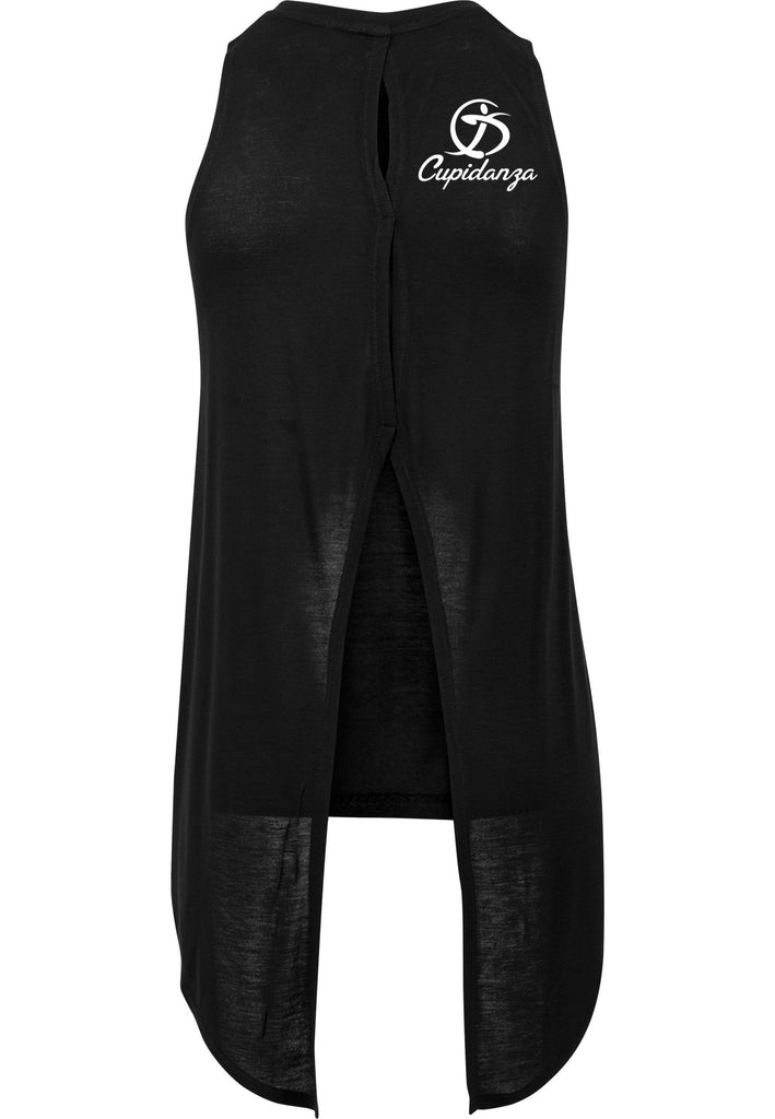 The main point is on the back part. At circular neck and two further points fixed until the waist, the open neckline allows a nice view. In addition, the back is opened from waist on and the soft cotton in overlength falls loosely up to the thighs. The front the Top looks simple – we love this casual streetwear!